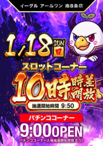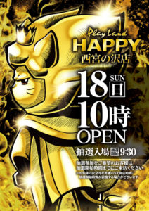 【1/18】DOKO行く?まとめ(どこのHAPPY?) DOKO行く? 2026.01.17 HAPPY 厚別通店 藻岩,西町,西宮の沢店 南6条,二十四軒,白石,屯田四条,栄町店 厚別店 ライジング マルハン 札幌北×苗穂店 琴似店 イーグル R-1南8条店 麻生店 アーリーバード藻岩店(渚あおい来店) メガエムズ1(まぁさ来店) おわりに 「8」の付く日。HAPPY&ライジングの特定日。9時開店の強いHAPPYも今回はポスター出ていますね……。期待してよいのかどうなのか……。