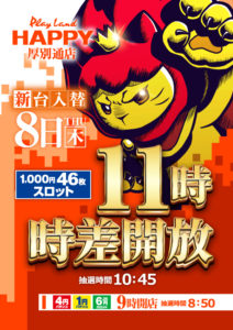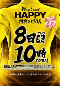 「8」の付く日。HAPPY&ライジングの特定日。延長営業も終わりそろそろ特日で高設定をツモりたい……。