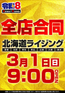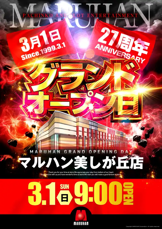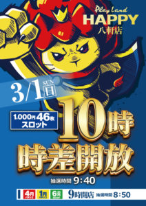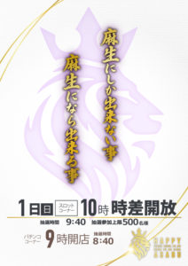 「1」の付く日。BDH&アーリーバード&メガエムズ1の特定日。周年がマルハン美しが丘店、場所的にちょっとなぁ……。という人も多そうなのでWEB抽選の結果次第ですが一見の価値ありかなと……。