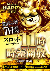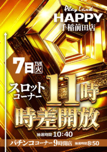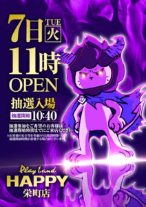 「7」の付く日。マルハンの特定日。対抗はいつも通りですがいつもよりはポスター弱め……?