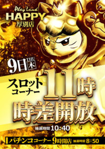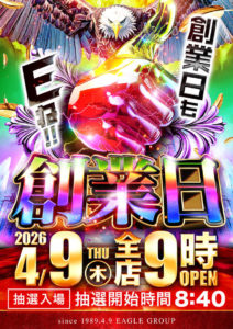 【4/9】DOKO行く?まとめ(創業日その2) DOKO行く? 2026.04.08 イーグル(創業日) 北41条店 HAPPY 南6条店 麻生店 更新され次第 栄町店 藻岩店 厚別,厚別店 西町店 ひまわり 豊平店(スロセレ,牙狼取材) 駅前タワー店 ベガスベガス 狸小路店(ジャンジャンドリドリ取材) おわりに 「9」の付く日。イーグルの特定日。そして創業日。明日は流石のイーグルもやる気出してくれるのではないでしょうか……。そして気になるのは対抗のHAPPYも同じかそれ以上に頑張ってくれるのではないかという期待……。